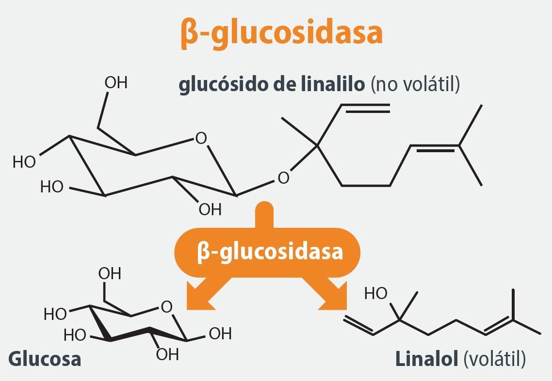 β-glucosidasa y proporciona una variedad amplia de aromas que suelen describirse como cítricos y florales. La liberación de tioles se da debido a la enzima